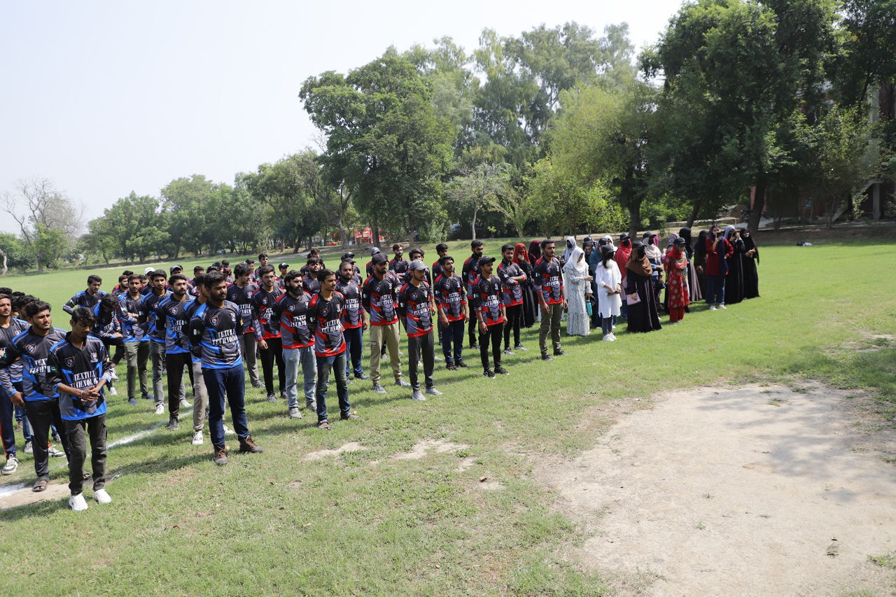 The opening ceremony of the intra-Departmental sports, Department of Textile Technology was held in the cricket ground of National Textile University on October 01, 2024. Dr. Amna Siddique (Assistant Professor/Convener Departmental Sport Committee) inaugurated the Event. Dr. Zuhaib Ahmad (Assistant Professor), Dr. Jawad Naeem (Assistant Professor), Mr. Waqar Ahmad (Assistant professor, Convener Sports Committee), Dr. Toqeer Mahmood (Assistant professor), Dr. Rehan Ashraf (Assistant Professor), Mr. Imran Ali (Sports Officer) and Pervaiz Akhtar (Sports Officer) were also present at the event.