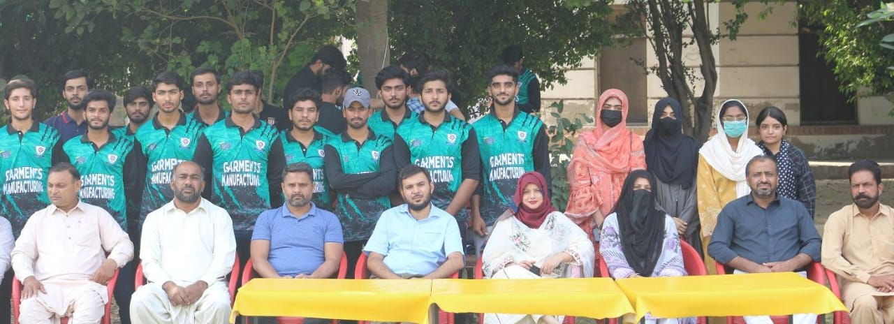 The ceremony was graced by esteemed guests, including Dr. Aqsa Imran (Coordinator, Dept. of Garments Manufacturing), Dr. Muhammad Babar Ramzan (Assistant Professor), Dr. Shagufta Riaz (Assistant Professor), Mr. Saeed Akhtar (Lecturer), Muhammad Aslam (Deputy Director, P&D), Mr. Pervaiz Akhtar, and Mr. Imran Ali (Sports Officers), who were also present at the event.