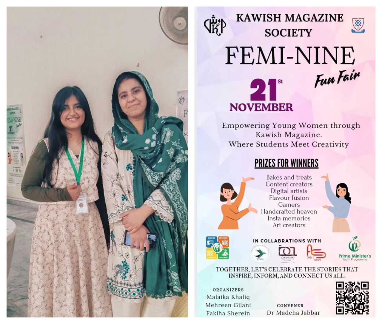 The Femi-nine Fun Fair event was a vibrant celebration of female entrepreneurship and empowerment, held at the National Textile University. Organised by the dynamic females of the NTU -YDC Kawish Magazine Society, this exciting fair showcased a diverse range of small businesses owned and operated by talented female students, alumni, and faculty members from various departments. From fashion and textiles to cuisine and handmade crafts, the event highlighted women's creativity, innovation, and determination in business. With interactive games, delicious food stalls, and lively music, the Femi-nine Fun Fare was a fun-filled extravaganza that promoted women’s empowerment, connectivity, and community building.