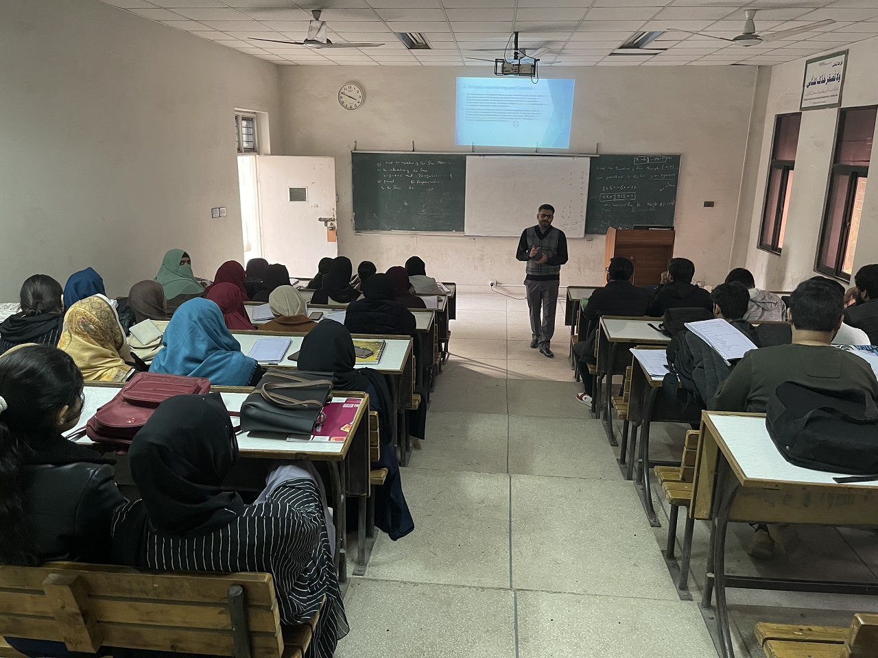 The Society of Software Engineers organized a workshop titled "Project Management in the Corporate World" on December 24, 2024, at the Department of Computer Science. The workshop was led by Mr. Muhammad Haroon, Assistant Director, Quality Enhancement Cell. The session covered key concepts of project management, its significance in professional life, and the steps involved in managing projects from initiation to completion. Participants also gained insights into the Project Management Body of Knowledge and professional certifications. Dr. Shahbaz Ahmad (Assistant Professor DCS) and Mr. Muhammad Naeem (Convener of Society of Software Engineers) were also present during the event.