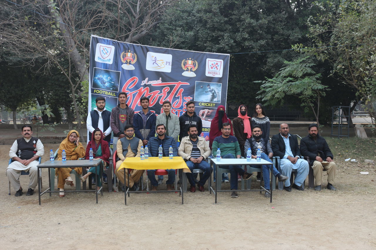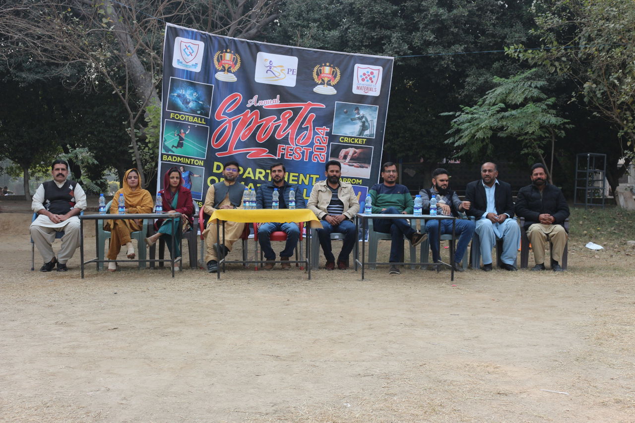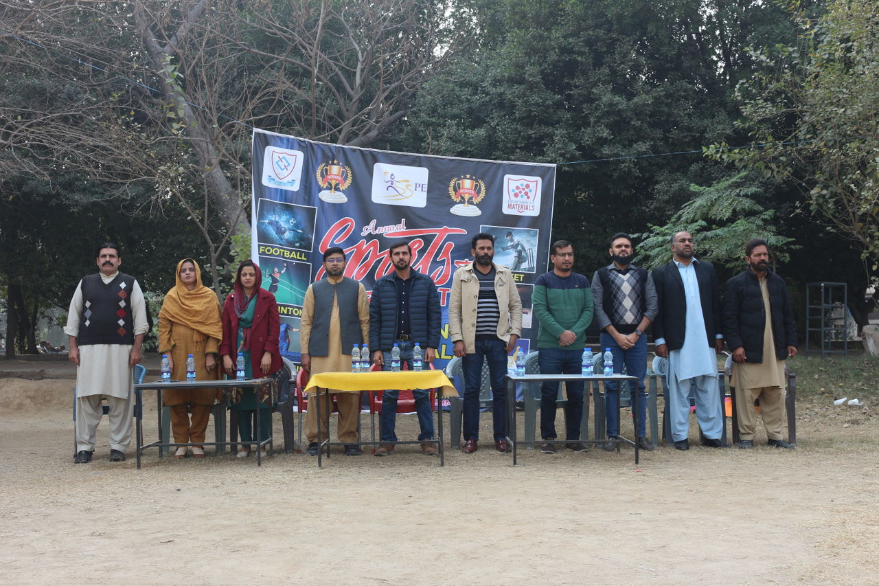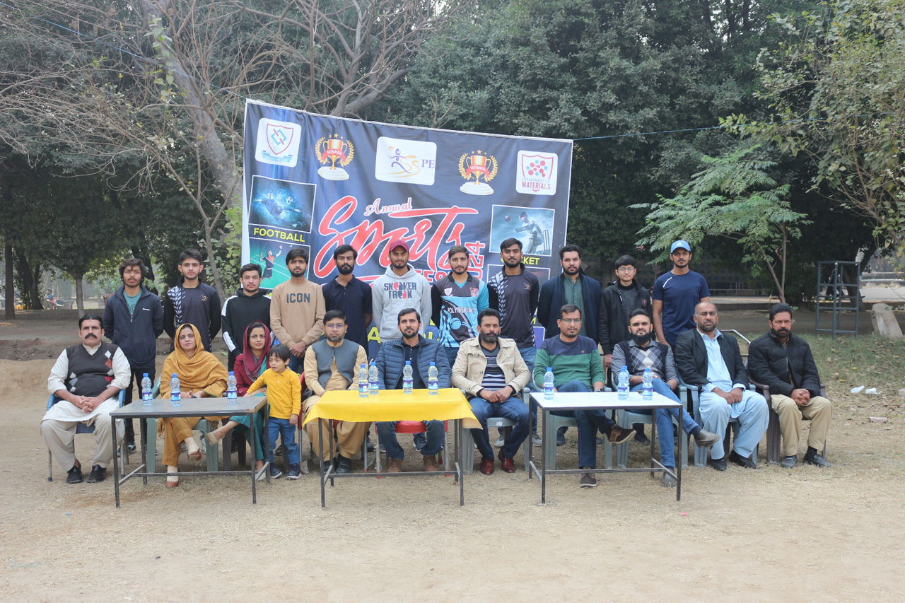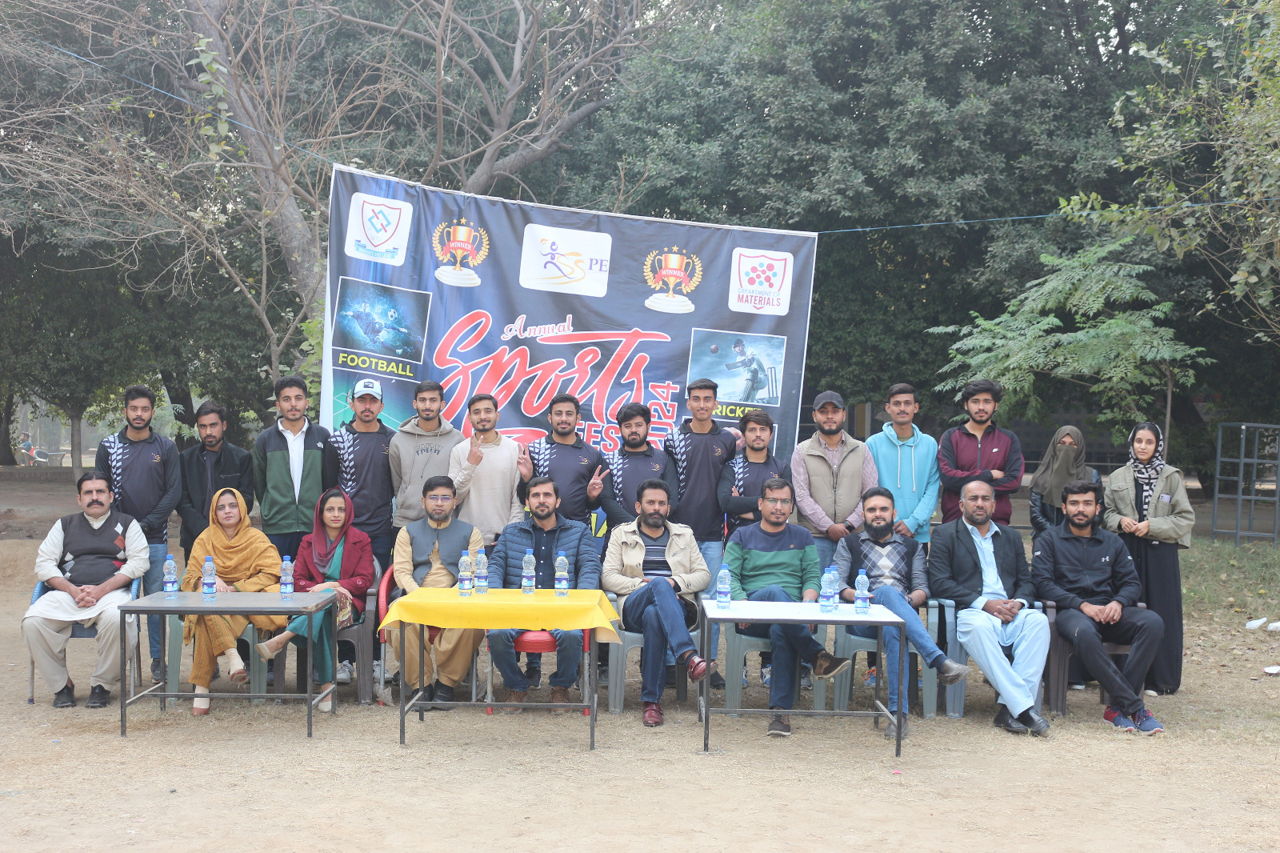 The Opening ceremony of the Intra-Departmental Sports Department of Materials was held in the Cricket Ground of National Textile University on December 17, 2024. Dr. Khubaib Shakir (Assistant Professor & Chairman Department of Materials) inaugurated the event. Dr. Zubair Kahliq (Associate Professor), Dr Wasif Razzaq (Assistant Professor), Dr.Asif Hafeez (Assistant Professor), Dr.Faiza Anjum (Assistant Professor), Miss Iqra Abdul Rashid (Lecturer), Mr.Farooq Anwar (Office Assistant), Mr. Muzammil Mehmood (Lecturer and Sports Coordinator Department of Materials), Mr. Imran Ali Gill and Mr. Pervaiz Akhtar (Sports officers) were present at the inauguration event.