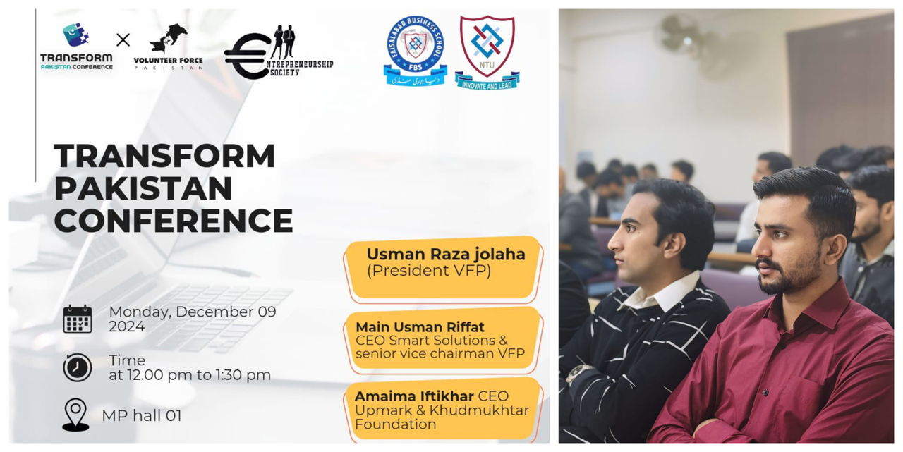 The NTU-YDC Entrepreneur Society organised an event on December 09, 2024, featuring a conference as a guest speaker. This enlightening session aimed to educate students about their civic responsibility towards society, emphasising the significance of active citizenship, social awareness, and community engagement. The key speakers were Usman Raza Jolaha, President of VFP, Mian Usman Riffat, CEO of Smarts Solutions and Senior Vice Chairman of VFP, and Amaima Iftikhar, CEO of Upmark and Khudmukhtar Foundation.