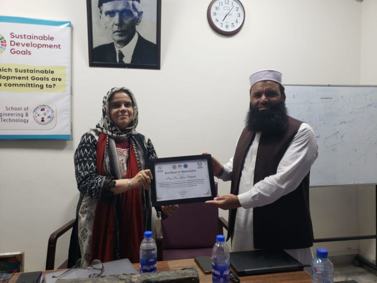The Society of Polymer Engineers, in collaboration with the Society of Engineering Scholars, organized a workshop on 19th May 2025 at NTU Faisalabad titled “Seismic Capacity Assessment of Textile Fiber Reinforced Infill Walls.” The session featured experts from UET Peshawar and NTU, who discussed innovative, low-cost solutions to enhance seismic performance of concrete structures for affordable housing. The event drew active participation from students and faculty, and certificates were awarded to all attendees.