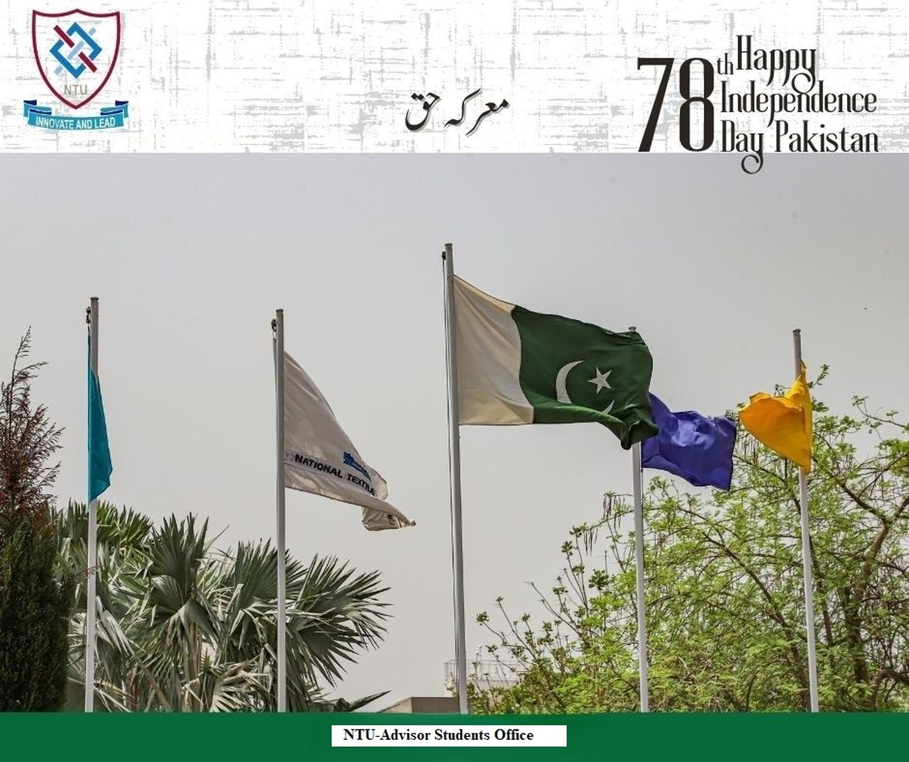 The National Textile University (NTU) celebrated Pakistan’s Independence Day with zeal and national spirit. The day began with the flag hoisting ceremony, led by Rector Prof. Dr. Rashid Masood, followed by a heartfelt dua for the prosperity and progress of the country.