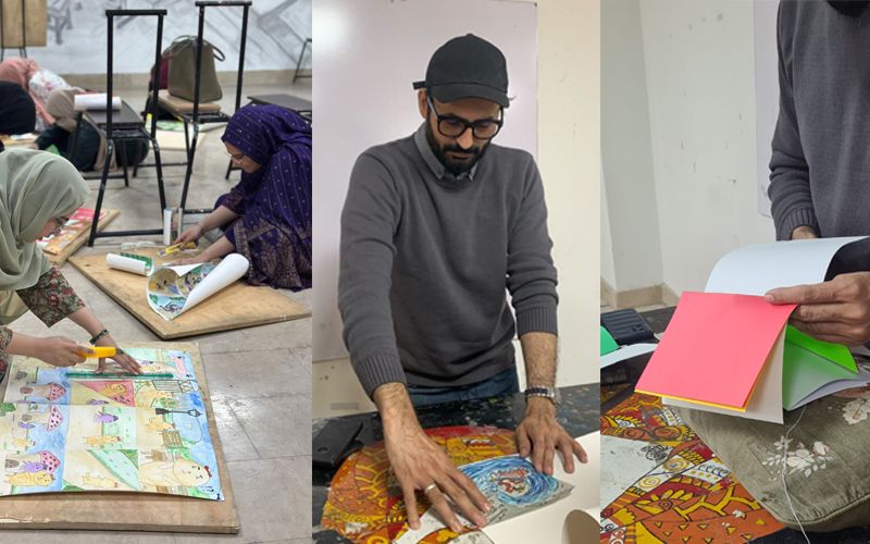 As part of their semester project, the 5th semester students created illustrative storybooks for children, integrating visual storytelling, character development, and narrative sequencing. To help students understand the craft of professionally finishing their books, the department invited Yasir Azaam Khan to guide them through the technical and creative aspects of bookbinding.