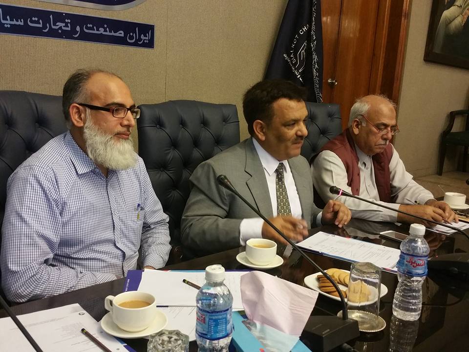 A Delegatation of National Textile University comprising of Dr.Zulifaqar Ali ( Dean FET), Dr.Yasir Nawab ( Chairman FMD), Mr. Zafar Javed (Chairman GMD), Dr.Rashid Masood ( Dir.R&D), Dr. Munir Ashraf and Mr. Muzzamal Hussain (Dy.Dir Student Affairs) visited sialkot chamber of Commerce and industry on April 05, 2016 to discuss the land requirement for establishment of sub campus of NTU in Sialkot. A meeting was held in SCCI building , Vice president chamber and member of SCCI executive committee were present in the meeting from SCCI. it was decided in meeting that at least 250 Acres will be required to submit PC-1 to government. NTU will write a letter to SCCI for land requirement so the process can be initiated with local government. It was also decided that PC-1 will be submitted till Mid of may so that required funds can be got in FY2016/17.