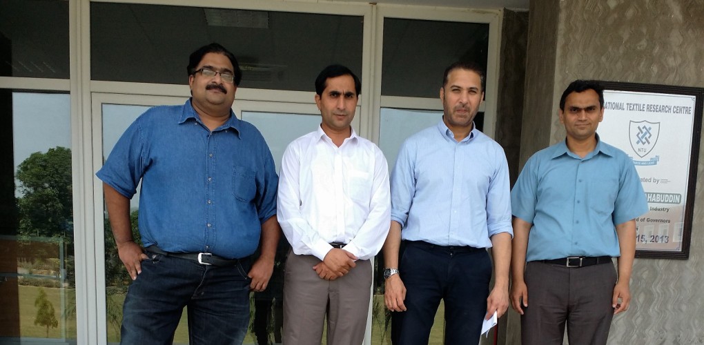 Mr. Adil Ghani (GM Nishat Dyeing and Finishing, Unit 35) and Hafiz Rahat (Research and Development Manager) visit NTU and meeting with Rector prof, Dr Tanveer Hussain,dr waseem ibrahim and Dr. Rashid Masood in regards of Academic-Industrial Linkage. Both departments agreed to run combine research projects. Nishat also show keen interest in getting testing and consultancy services of the University.