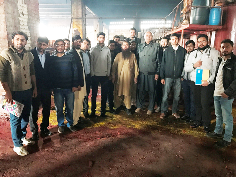 A study tour to Haris Dyestuff Industries, Faisalabad was arranged for the students of 5th semester of Textile Processing Department under the supervision of Prof. Dr Muhammad Tahir Hussain, Dean Academics on January 14, 2017 (Saturday). This tour was very helpful for the students as they are currently enrolled in the subject “Colorants and auxiliaries”. So it was a chance to materialize the theoretical knowledge into the practical one. Students learned a lot from this tour.