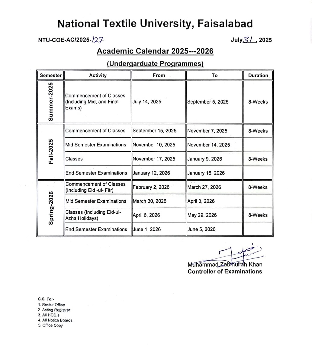 Academic Calendar (Undergraduate Programmes) 2025--26