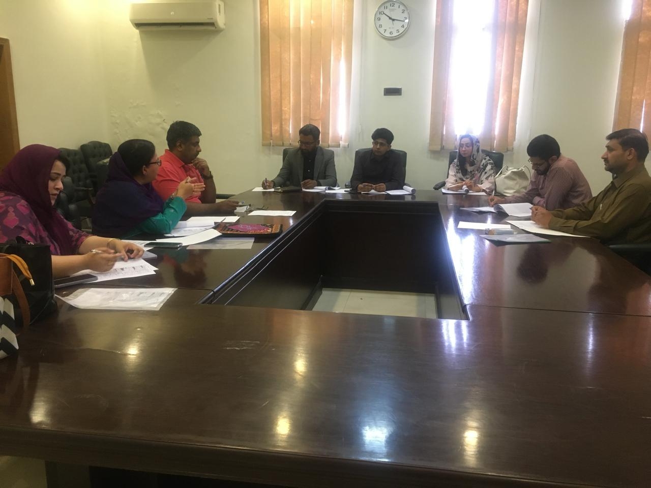 Quality Enhancement Cell (QEC) of National Textile University (NTU) has completed the Self-Assessment Process for Bachelor of Textile Design. The meeting was held on April 30, 2024 in the meeting room of NTU. The Assessment Team (AT) comprised of Dr. Muhammad Hashim, Associate Professor, Faisalabad Business School, Convener of AT, Dr. Muhammad Mushtaq, Assistant Professor, School of Arts & Design and Ms. Mubarra Rafiq, Lectuer, School of Arts & Design. Assessment Team evaluated the program according to HEC’s prescribed Self-Assessment Criteria and recommended improvements accordingly.