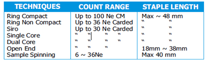 Yarn manufacturing facility is equipped with advanced equipment to develop yarn from natural, regenerated and synthetic fiber.